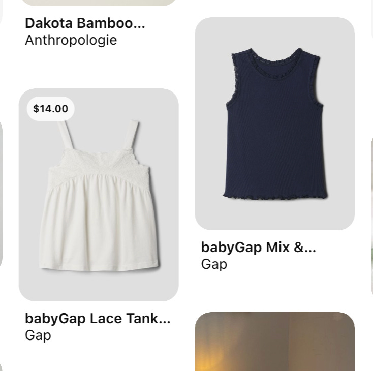 I get served a lot of paid ads for outlet sites on Instagram and my other favorite social media of choice—Pinterest. I also often get ads for baby/kids clothes that are masquerading as flirty little tops (see below), and both are guaranteed to earn a click-through from me.
