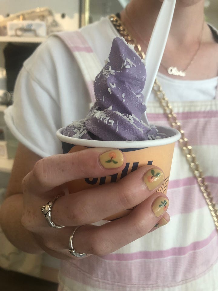 On a family trip to the city in the summer of 2019, I forced my mom and my sister to traverse down to Orchard Street—a part of Manhattan I had never been before—to visit the original Chillhouse location. I got nail art and an ube frozen yogurt swirl and felt like the coolest bitch in the world.