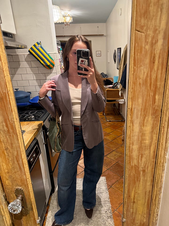 ’s “office hours” that he hosts for people to meet and hang out in his office where he is the boss of multiple people. I like meeting strangers and need to do it more. I also think more parties should start at 6:30 because I still got full night’s rest. Diego is really good at introducing people to each other and has saved me at multiple events when I’m obviously struggling to join any conversation. That’s a skill I fear will dwindle amongst my generation and the ones after us.As promised, I’d like to show you all the jacket I got from The Real Real I mentioned last week. It’s perfect and amazing and was highway robbery. Vintage Dolce that’s in almost perfect condition, ideal for transitional fall wardrobing (I just went full copywriter on you all). Hopefully I will finally get to wear it after the most miserably humid week imaginable.