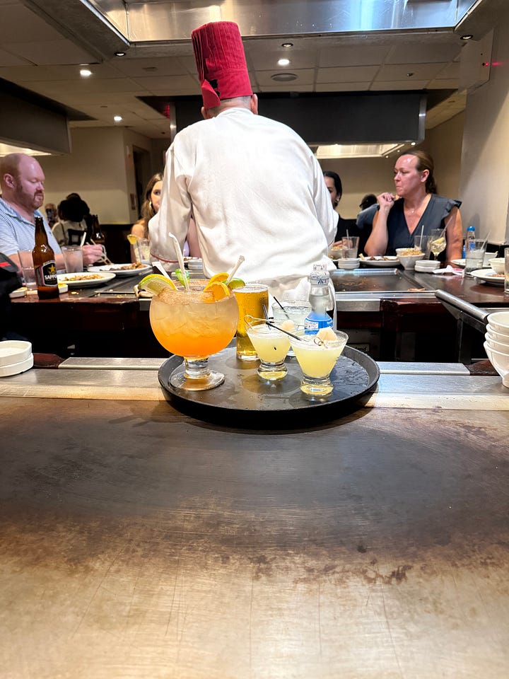 My best friends and I celebrated two of our dearests' birthdays at none other than the Benihana on 56th Street on Saturday Night. This was my first experience at Benihana, as my hometown is famous for one of the most delectable standalone hibachi restaurants of all time. The only thing I knew about it was that Devon Aoki and Steve Aoki were heirs to the Beni throne. What a fantastic institution. The drinks were strong (as you can tell), and the service was awesome. What’s better than dinner and a show? No throwing shrimp, however, so we had to take matters into our own hands. At this point in reading, I’d imagine you may be concerned for my wellbeing after my drink of choice. Have no fear, I split it with the birthday girl and offered many sips around the table. I think it was my first and last pumpkin spice margarita.
