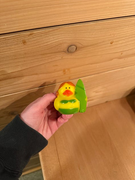 I’ve been very good about not shopping, considering it’s become a necessity rather than a best practice. In Greenport, I got the crochet poncho pictured below, a pocket knife with my name on it, and a surfer rubber ducky. I can’t help but be a sucker for a souvenir.