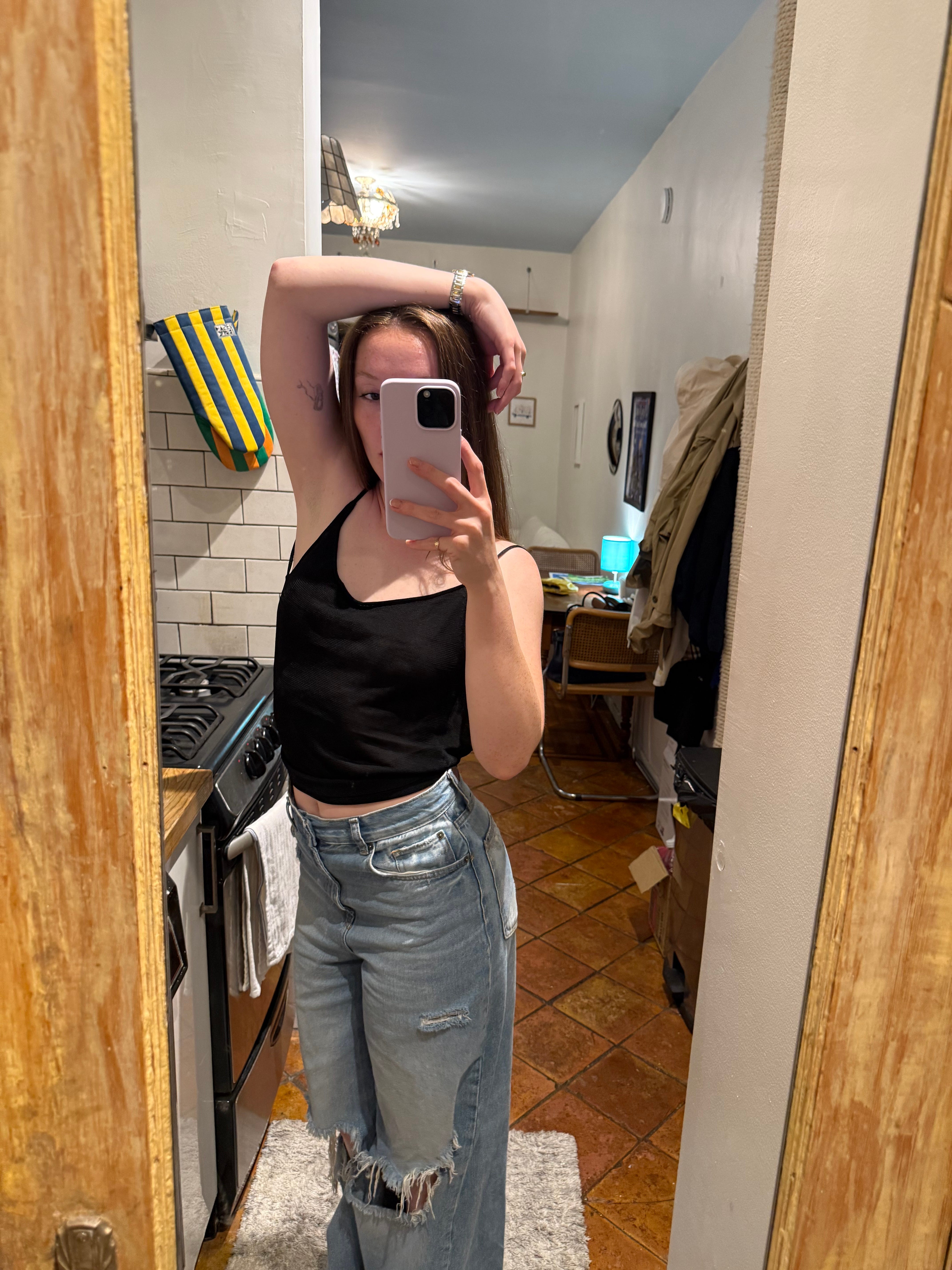 Now, the going out top is integral to my wardrobe in different ways. An easy after-work date or dinner only takes around 20 minutes to get ready for so long as I already have jeans on. If I toss three into my suitcase for a weekend trip, I leave with both options and room for more. If you take a closer look at Devon Lee Carlson, Olivia Jade, Lila Moss, Hailey Bieber, or anyone else who falls under the quintessential “cool girl” umbrella, you will see that the majority of their outfits on a night out revolve around the top—it’s a way to look effortlessly cool, like you don’t have to try to look chic. You’re laid back. You’re chill. You’re a chill girl. Imagine that.