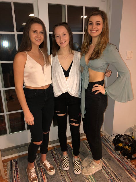 Going out tops are more than just a piece of clothing. They’re the essence of eternal girlhood. My friends and I used to swap them like Pokémon Cards, begging each other to wear the one we saw them debut last weekend. This was the best in college because the dorm basically served as a trading post. My dorm was as stereotypical as it got—disgusting carpeted floors, yellow-wood lofted beds, the same wood used across our desks and cabinets, the walls cinderblock, the hallway endless rows of rectangular rooms divided by girls rooms and boys rooms. From Thursday to Sunday (and if it was a game day—forget about it), these halls were a runway for us, running back and forth from room to room to borrow a top that would complete the outfit from someone you met two weeks ago, but was now your new best friend.