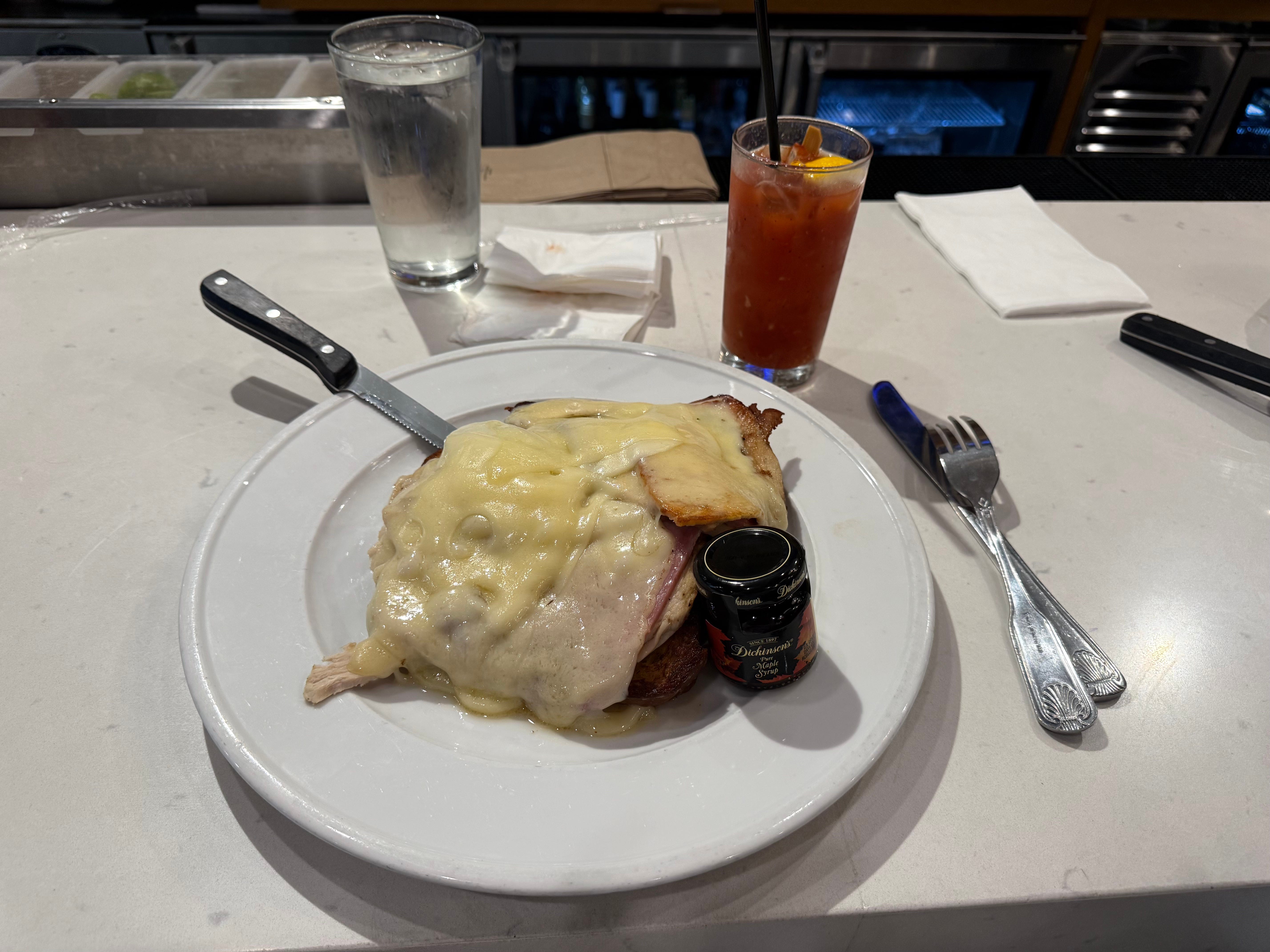 Someone ruined EJ’s by posting about it on TikTok, so the line was wrapped around the block. We settled for the bar at Gracie Mews Diner, which was delicious while slightly expensive for a casual brunch. I got a bloody mary because, when in Rome. Monte Cristo sandwiches have been my favorite ever since I was a kid, and the Gracie Mews one was the perfect substitute for my favorite Connecticut diner that has since shuttered.