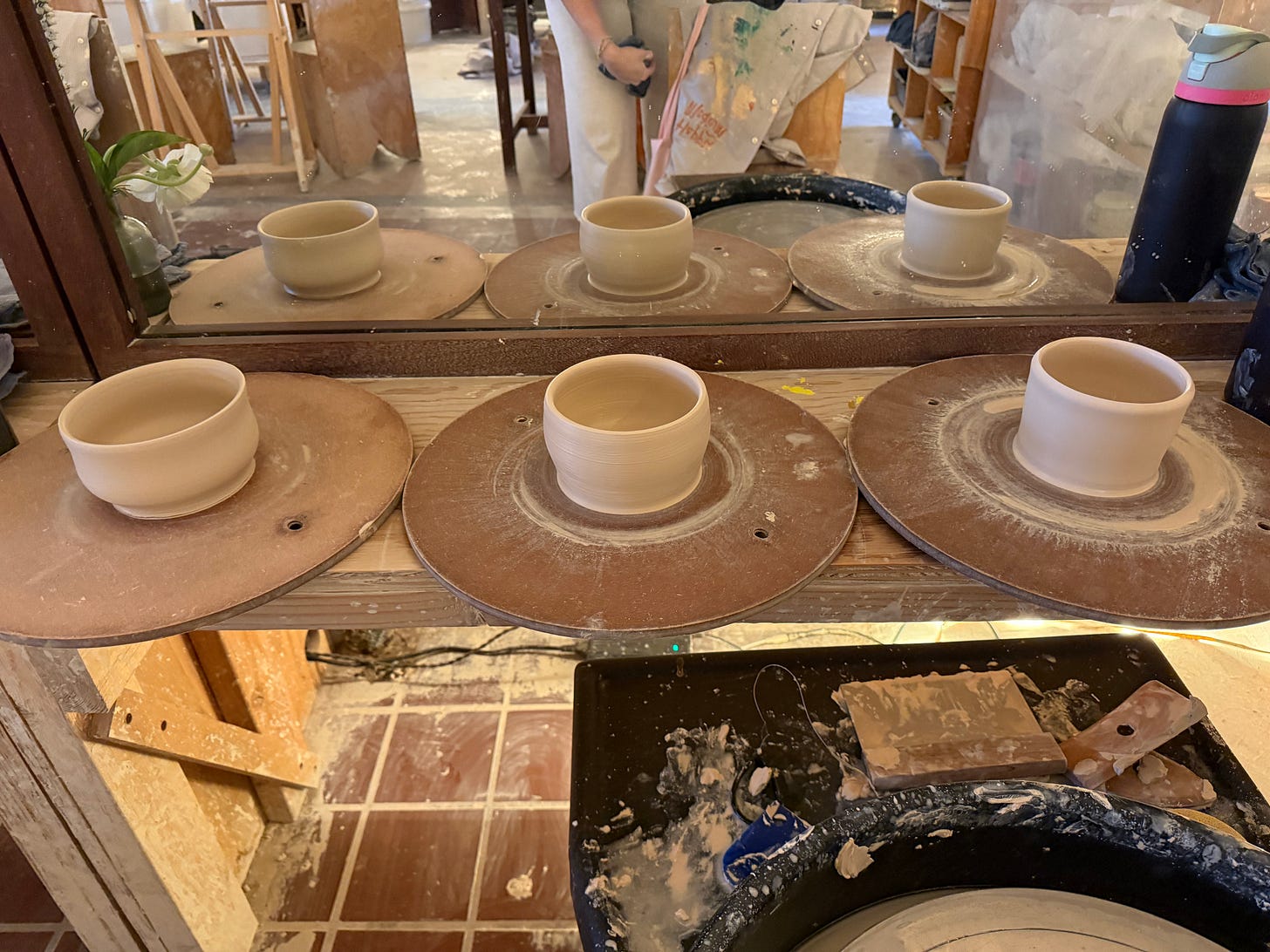 On Sunday I went to the pottery studio, where I got back on the wheel for the first time in what I think was a little over a month. Just like riding a bike, I made one of my favorite pieces to-date, and three of the biggest I had ever been able to accomplish.