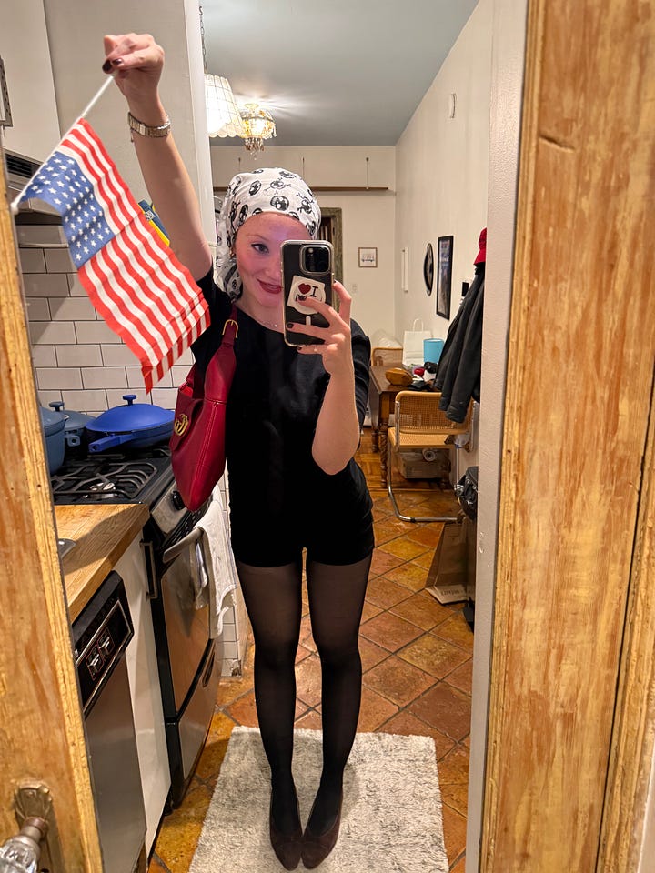 Thursday night was my main event. I had a party to go to at one of my best friend’s family apartments, and her mother knows how to put on a party. I dressed as Little Edie Bouvier Beale because she is the only good Kennedy in my opinion, but added the flare of an Alexander McQueen skull scarf because, why not? This scarf was actually from Amazon. It goes against anything I’ve ever stood for, buying a dupe. There’s a first time for everything.
