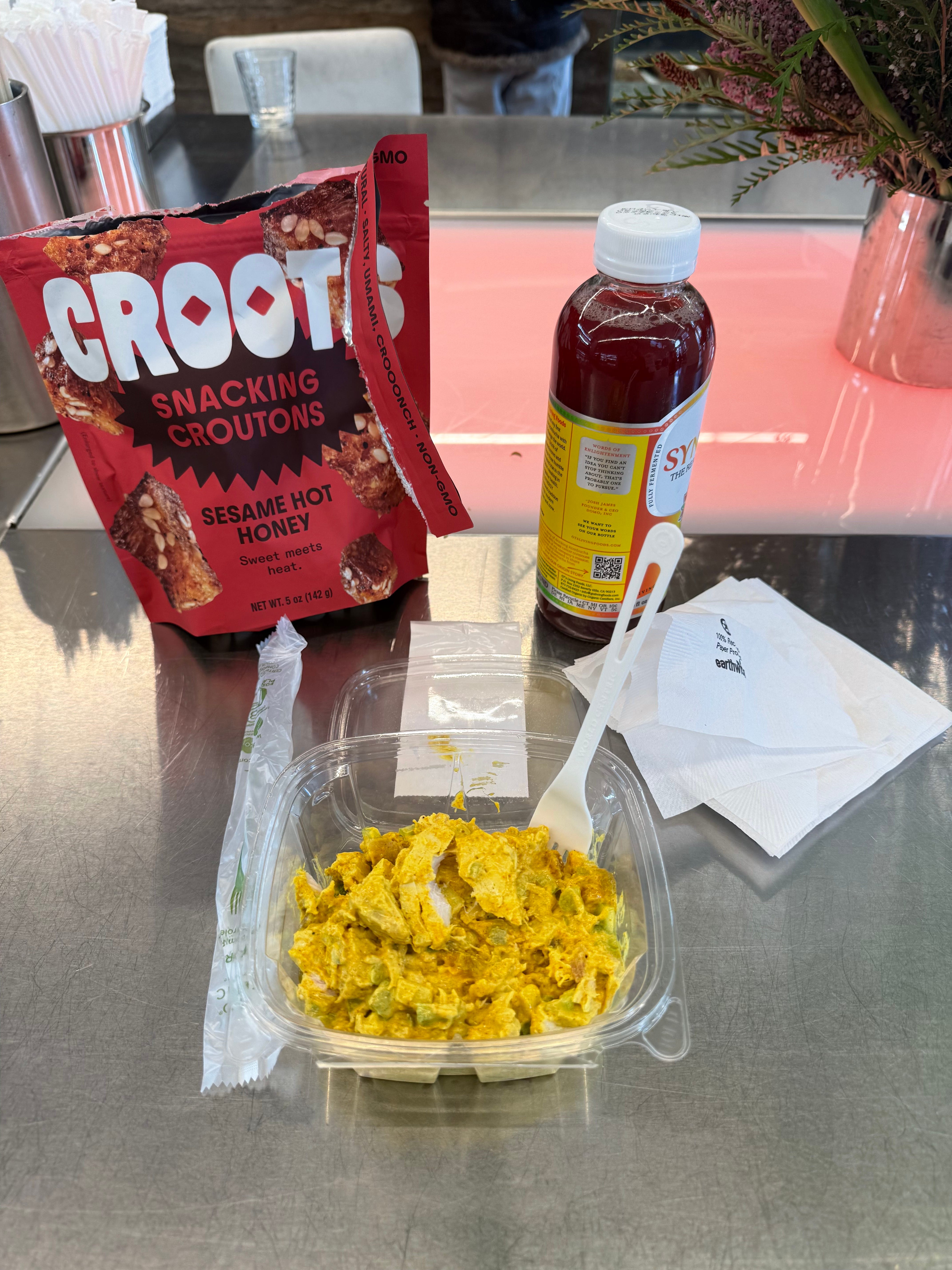 On Saturday, my friend Maddie and I braved the sub-zero temperatures to make my first trip to Happier Grocer, something that’s been dubbed “NYC’s Erewhon” if you’re unfamiliar. Talk about people watching. I’ll definitely be back when it’s warmer and I’m richer. These snacking croutons are my new favorite thing ever. Their curry chicken salad was also great.