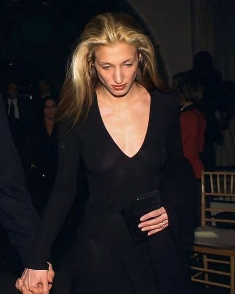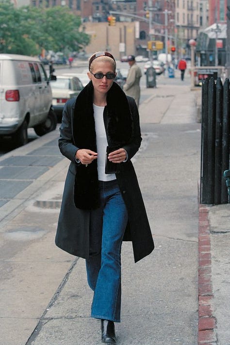 Carolyn’s chokehold on our generation is so fascinating to me. She’s obviously one of the—if not the, in my eyes—chicest woman to ever live, and a true tastemaker as seen in her work at Calvin. But she was so, painfully private. We don’t have any videos of her speaking formally or in an interview setting like some of our favorite celebrities from the 90s, she never did formal photoshoots, or any photoshoot at all for that matter, and all of the photos we have of her are from her paparazzi tormentors, often capturing her seeking shelter from them all across Lower Manhattan. For someone so recluse, she made such an immense impact.