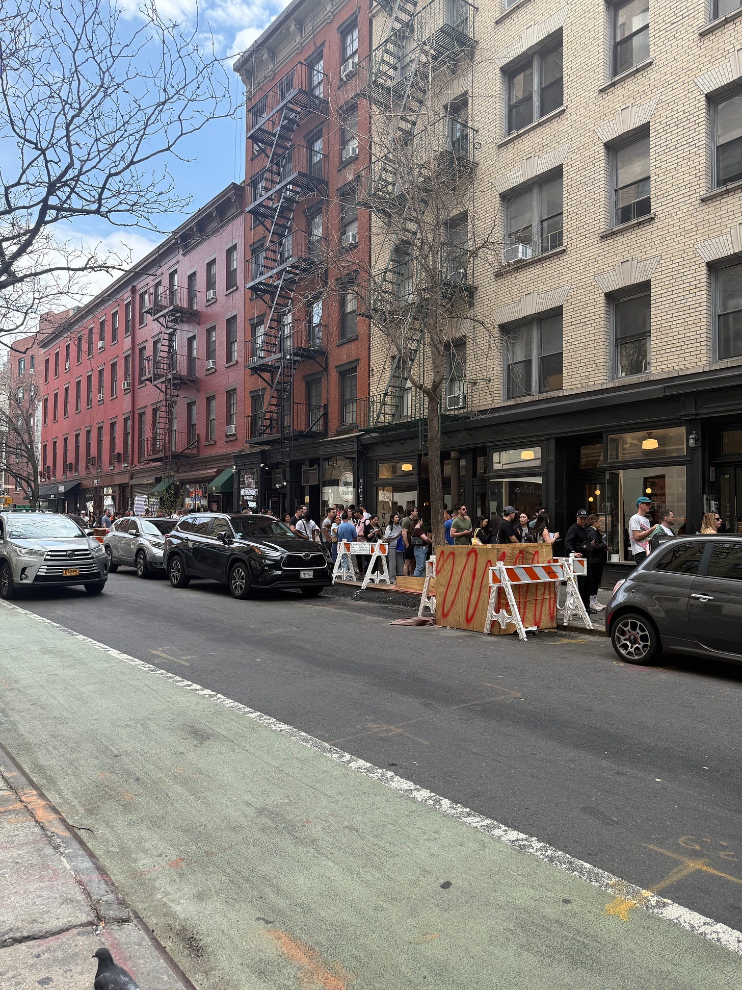 Finding a post-lunch Aperol Spritz on the best day of the year is not for the weak. Bar Pisellino had a line down the block that didn’t seem to be moving, and there wasn’t a table on 6th Avenue or Hudson unsat. I observed a lot in the time spent trekking to and fro bar after bar—including a Golden Doodle wearing boots and a new dating app promoting themselves on the busiest intersection in the area via hard-to-get reservations. We ended up inside at Buvette, which was just fine. It’s a classic spot with a great spritz and even better vibes.