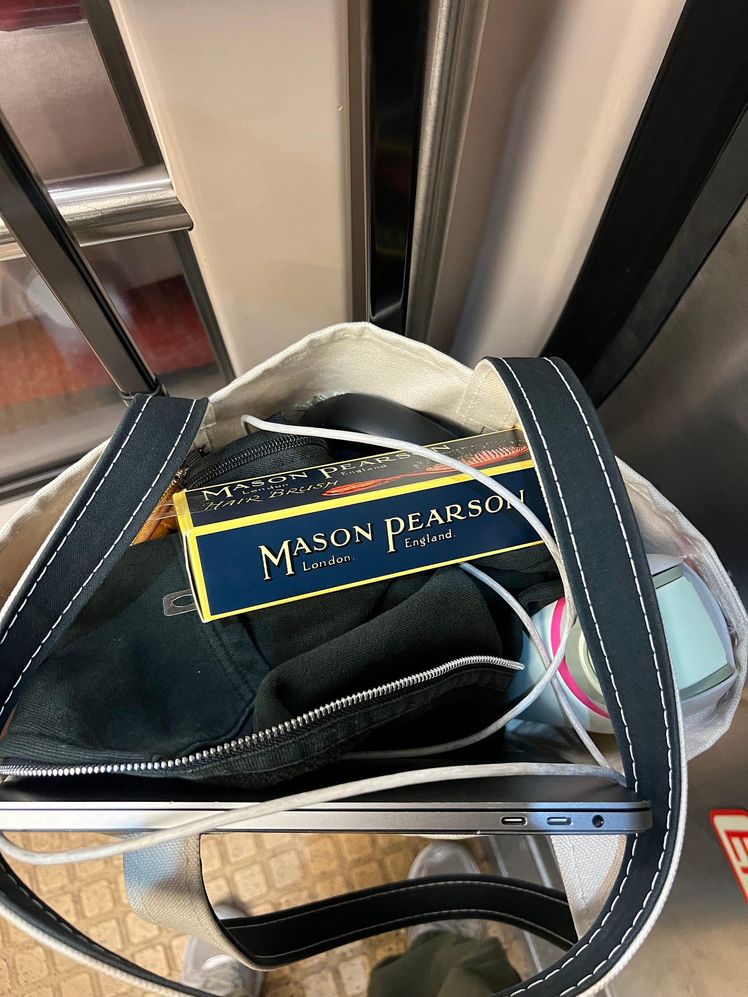 My dear friends were extraordinarily generous and gifted me a Mason Pearson brush. I of course had heard of it via TikTok, but much like things such as the Dr. Dennis Gross Red Light Therapy Mask or La Mer cream, I thought it was a luxury I would never experience.