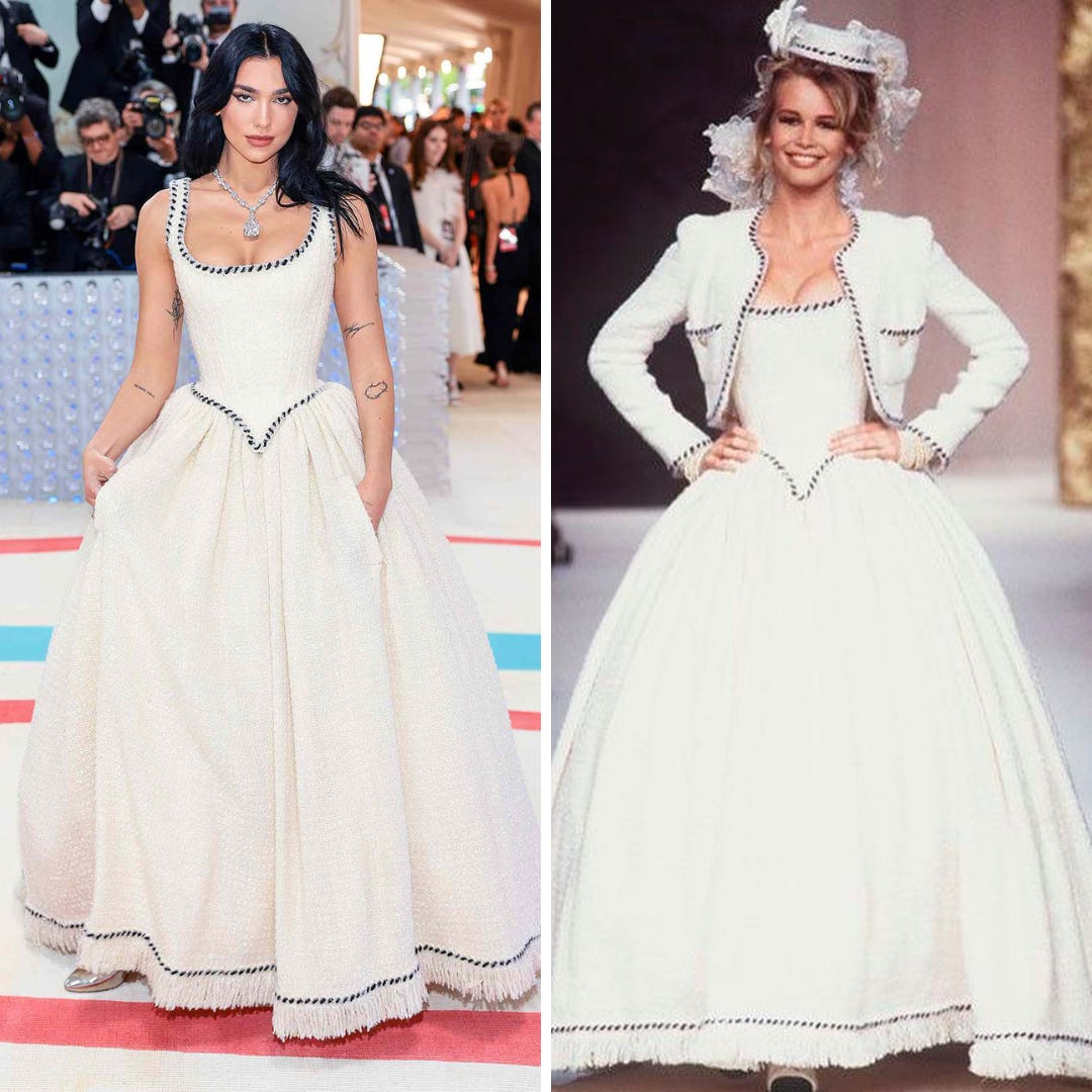Dua Lipa was the epitome of what a MET Gala Co-Chair should bring. She was perfectly on theme, she was elegant, she was timeless, and she (*her stylist*) was extremely smart. Known for choosing a bride at the end of his shows, an integral part of Karl’s Legacy are these closing looks. Something everyone was excited about was the maximum potential of archive this year, and this dress worn by Claudia Schiffer as the bride during Chanel’s ‘95/’96 Fall show is nothing shy of epic. Amazingly flattering and something I would love to borrow during my own betrothal down the road.