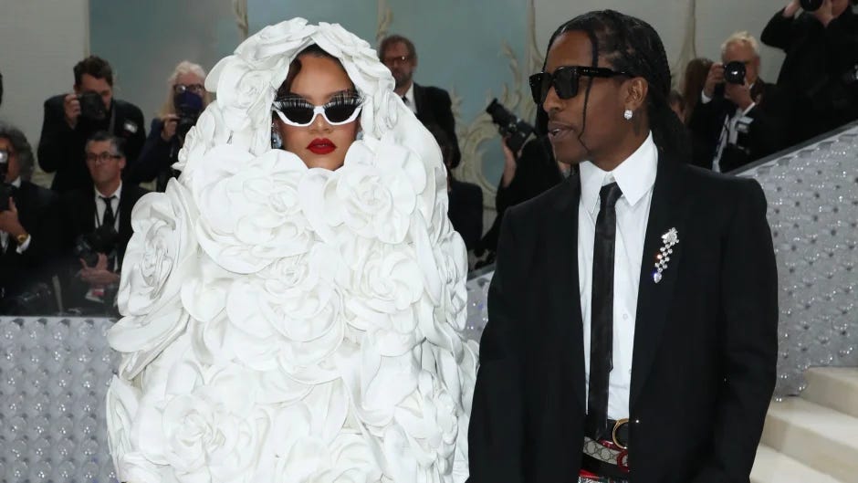 BEFORE ANYONE GETS UPSET WITH ME—they look amazing. They’re absolutely serving, they nailed the theme, and I’m obsessed. But what I don’t love is arriving three hours late, when the carpet is done, and coverage has ceased. We needed a Rihanna-arrival moment in its full light, and I’m just sad we didn’t get that.